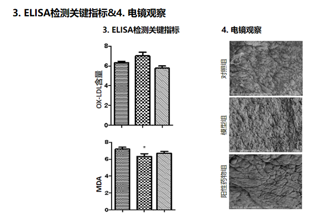 造模:高脂饲料喂养兔/鼠建立动脉粥样硬化模型,阳性药物为阿托伐他汀。