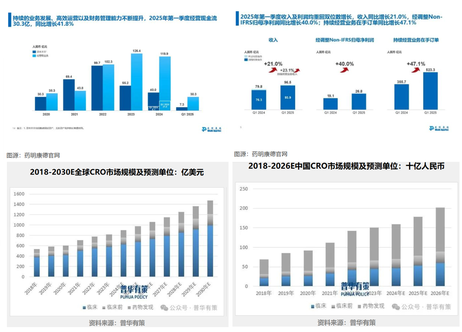 2025年,药明康德、凯莱英等头部企业一季度营收重回两位数增长快车道,为创新研发注入充足“资金活水”:药明康德当期营收96.5亿元,同比增长21.0%,持续经营业务在手订单同比增长47.1%;凯莱英营业收入15.41亿元,同比增长10.1%,新兴业务收入同比增长超80%,海外订单的持续扩容成为核心驱动力。作为全球创新药研发的黄金赛道,心血管领域正迎来研发外包率持续攀升的行业趋势:2025年全球药物研发整体外包渗透率已达51%,心血管领域因研发复杂度高,临床试验外包渗透率更是高达61%;国内方面,2023年药物研发外包渗透率已达35.7%,且呈快速攀升态势,随着产业链分工不断细化,未来提升空间广阔。