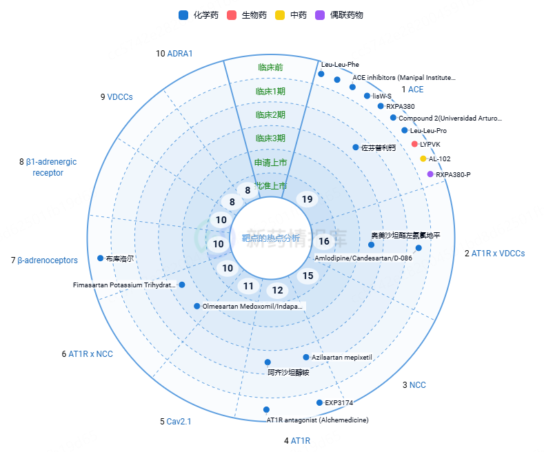 目前对于高血压疾病治疗的研究,ACE、AT1R×VDCCs、NCC靶点是目前的三大研究热点。