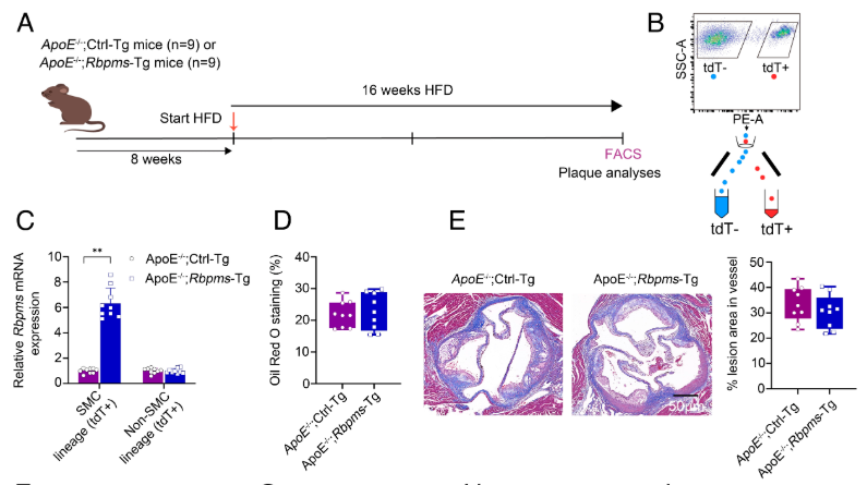 此前,该团队已于2025年3月4日在PNAS发表研究“The RNA-binding protein RBPMS inhibits smooth muscle cell–driven vascular remodeling in atherosclerosis and vascular injury”,发现另一个关键调控因子——RNA结合蛋白RBPMS。RBPMS是血管平滑肌细胞(VSMC)特异性的保守基因,而动脉粥样硬化及血管壁损伤引发的VSMC表型异常,是血管重构、斑块帽生长及介入治疗后再狭窄的重要诱因。研究证实,RBPMS可通过与心肌素(MYOCD)前体mRNA相互作用,借助替代性外显子2a剪接增强MYOCD_v3/MYOCD_v1转录本平衡,以MYOCD_v3a依赖的方式促进VSMC收缩表型分化、降低其纤维增生活性。这一机制能有效抑制VSMC驱动的血管重构,减少斑块帽发展及介入后内膜增生。