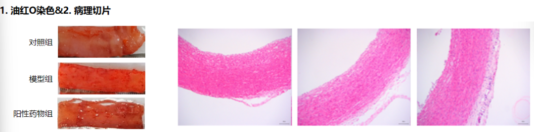 造模:高脂饲料喂养兔/鼠建立动脉粥样硬化模型,阳性药物为阿托伐他汀。
