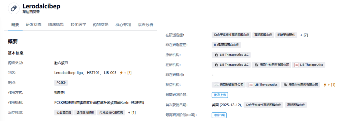12月17日,云顶新耀-B(01952.HK)股价显著拉升,截至收盘,涨幅为6.79%,报50港元/股。该股大幅异动,主要源于云顶新耀·乐瑞泊®(通用名:lerodalcibep-liga)于2025年12月12日获FDA批准,用于成人高胆固醇血症(包括杂合子型家族性高胆固醇血症HeFH)。作为首个PCSK9抑制剂融合蛋白,其Ⅲ期数据显示,心血管高风险人群LDL-C(坏胆固醇)持续下降≥60%,HeFH患者下降59%;中国关键注册Ⅲ期已完成12周数据分析,达到主要疗效终点。目前云顶新耀通过与海森生物的授权协议获得大中华区独家许可,拟2026年上半年递交BLA,最快2027年在国内获批,同时已向欧洲药品管理局(EMA)递交上市申请。随着此次FDA批准落地,叠加大中华区商业化进程的推进,云顶新耀有望借助乐瑞泊这款重磅产品,拓展至具有庞大未满足需求的心血管治疗领域,为长期业绩增长注入强劲动力。