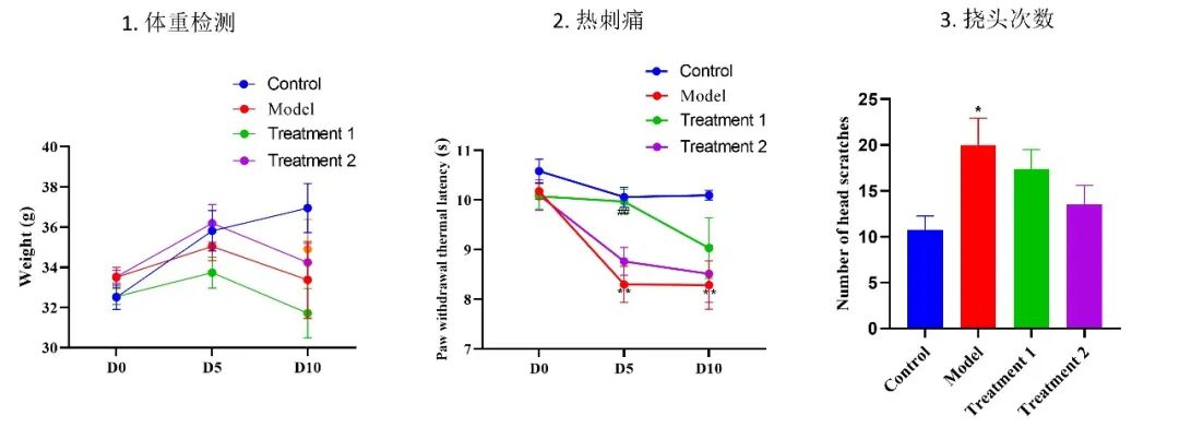 造模:ICR小鼠(雄性,4-5周龄,20-22 g),适应性饲养结束后,空白对照组背部皮下注射0.9%氯化钠溶液,模型组皮下注射利血平注射液;注射第一天记为D1,连续10 d,即D10结束。
