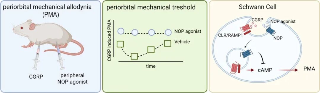 意大利费拉拉大学Chiara Ruzza教授团队在British Journal of Pharmacology发表论文“Activation of peripheral NOP receptors reduces periorbital mechanical allodynia evoked by CGRP in mice”,提出既往中枢穿透性的NOP激动剂常伴随嗜睡等不良反应,而外周受限型化合物UFP-112,因不穿越血脑屏障而避免了此类副作用。这为未来开发安全性更高的新型偏头痛治疗药物提供了方向。