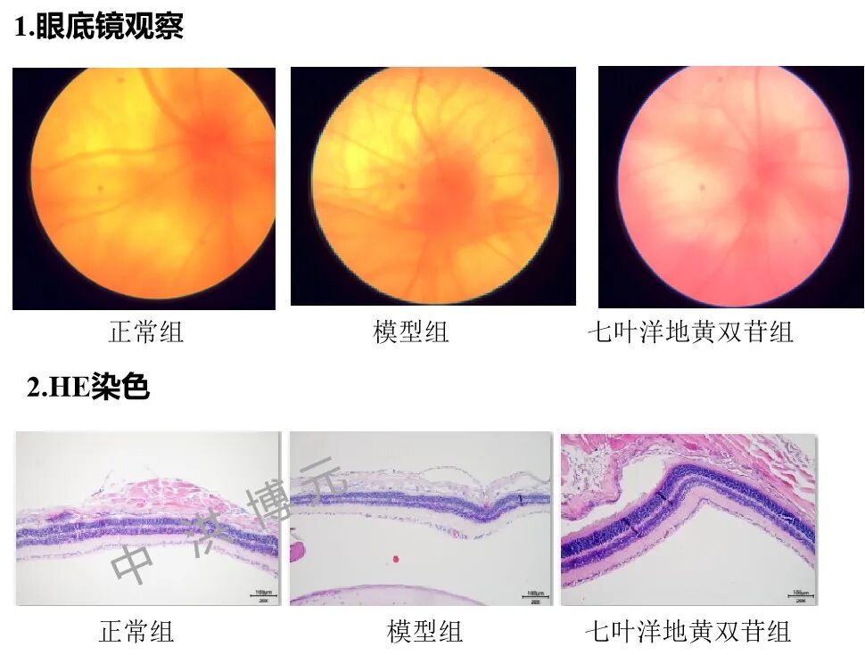 造模方法:适应性饲养1周后尾静脉注射碘酸钠,避光条件下饲养数天后进行模型验证。