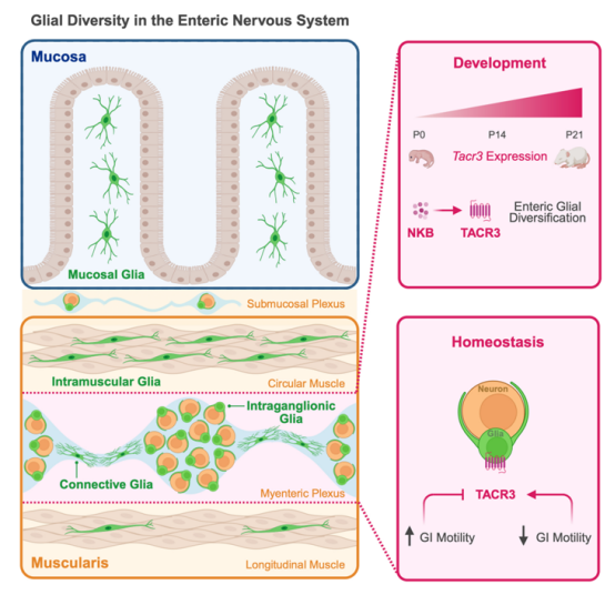 2026年1月17日,美国波士顿儿童医院与哈佛医学院Meenakshi Rao团队,在国际神经科学权威期刊Neuron发表最新研究Tachykinin signaling defines distinct populations of glia in the enteric nervous system,破解肠道神经胶质细胞(Enteric Glial Cells,EGCs)的“隐藏身份”,填补了肠胶质细胞异质性研究的空白。
