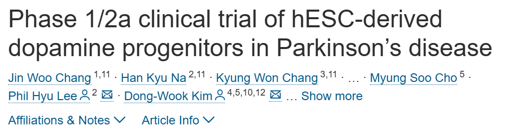 · 人胚胎干细胞衍生疗法:《Cell》发表的 1/2a 期临床显示,将定向培养的多巴胺前体细胞移植至患者壳核区域,高剂量组 “关期” 时间缩短约 3 小时,移植细胞成功成熟为功能性神经元并形成突触连接。