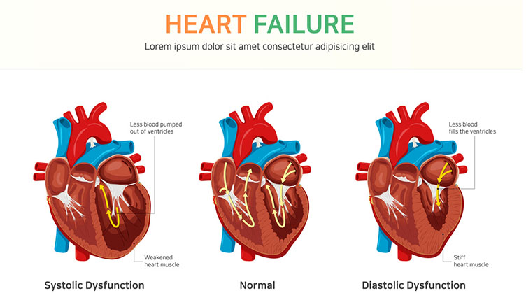心力衰竭 (HF) 由两种主要疾病形式组成,一种是射血分数降低的心力衰竭(HFrEF),是指心肌无法正常收缩以将足量的富氧血液泵送到身体的其他部位。另一种是射血分数保留心力衰竭(HFpEF),是指左心室能够正常收缩(因此射血分数正常),但舒张功能障碍使得心脏无法有效地充盈血液,导致泵出的血液减少。