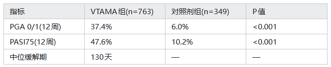 按治疗组划分的不同时间点达到共同主要终点IGA 0或1*及PASI 90的受试者比例 (图片来源:The Lancet)