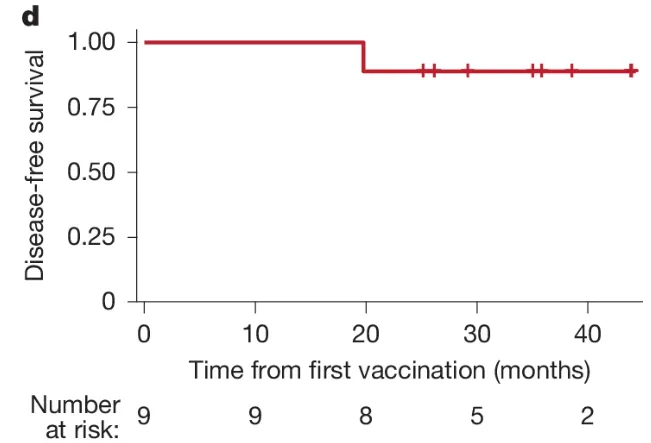 令研究人员振奋的是,疫苗在短短三周内就能诱发免疫反应,疫苗诱导的T细胞数量平均增加了166倍,并且这些T细胞在体内保持高水平长达3年之久。体外研究还表明,疫苗诱导的T细胞对患者自身的肿瘤细胞具有活性。这意味着,疫苗在唤醒免疫系统的同时还产生了免疫记忆,让免疫系统可以持续消灭癌细胞,长期保护我们。