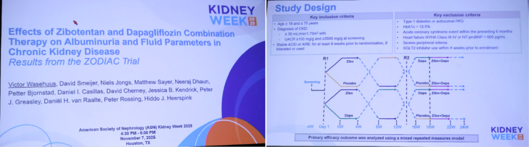 2025年11月第58届美国肾脏病学会(ASN)年会上,丹麦Steno糖尿病中心的ZODIAC试验证实 Zibotentan(选择性内皮素受体A拮抗剂,ETA)齐泊腾坦,搭档“肾科明星药”SGLT2 抑制剂达格列净,效果直接翻倍。